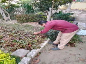 قص حوض عقلة الاكاليفيا الحمراء وحوض عقلة الدورانتا الصفراء وجمع المخلفات وري المشتل