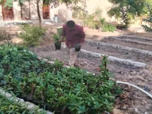 تفريغ الطمية وإعادة تقليبها من شوالي العقله الفارغة وري المشتل ورش مبيد الملاثيون للمشتل الرشه الوقائيه