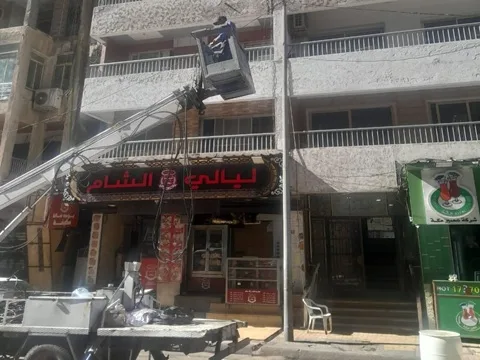 ربط وتوصيل كابلات هوائيّة مقطوعة وتركيب كشاف ليد بدلآ من التالف وإعادة امرار التيار