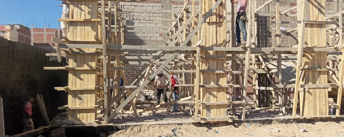 إيقاف أعمال شدة خشبية لصب سقف الدور الأول علوي كاملًا، بعزبة بدوان، وفك الشدة الخشبية بالكامل