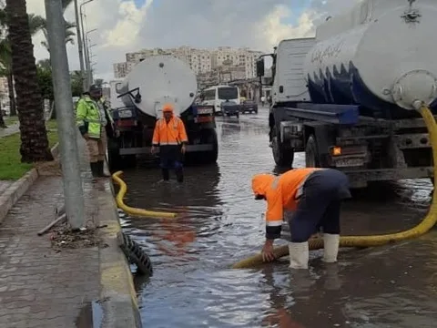 مواصلة أعمال كسح وتصريف المياه من الشوارع والميادين الرئيسية، لضمان السيولة المرورية للمارة والسيارات