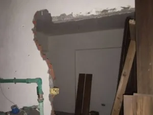 وبالمعاينة علي الطبيعة بتواجد الكول الأمني لقسم أول المنتزه، تبين وجود أعمال تقفيل حوائط خارجية بالخشب لغرفتين بأعلي سطح الدور السابع عشر، وتم فك الخشب بالكامل والتحفظ علي عدد ٢ باب خشب