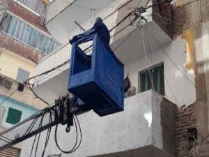 رفع وتوصيل كابلات هوائيّة مقطوعة وإعادة إمرار التيار الإنارة، ورفع نصف عامود مكسور وعدد (٢) كشاف مكسور بسبب العوامل الجوية بشارع العيسوى تقاطع شارع محمد نجيب